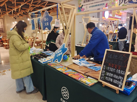 每一幅画作都是孩子们表达自己情感和思维的窗口,志愿者同学们非常积极地向大家介绍义卖物品的寓意,并为大家科普独孤症的相关知识,希望通过这样的方式,让更多人了解和关注到孤独症儿童。活动期间所有善款将进入“星星雨”微店,义卖结束后款项将会进入中华少年儿童慈善救助基金会的“星星雨”专项基金,用于支持孤独症儿童及其家庭。